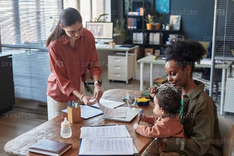 Мать, работающая из дома и заботящаяся о ребенке