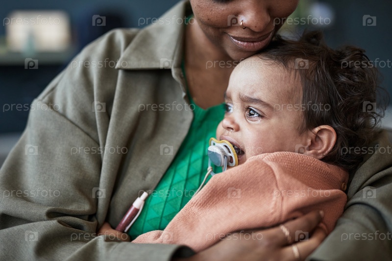 Утешать плачущего ребенка, держа в руках телефон
