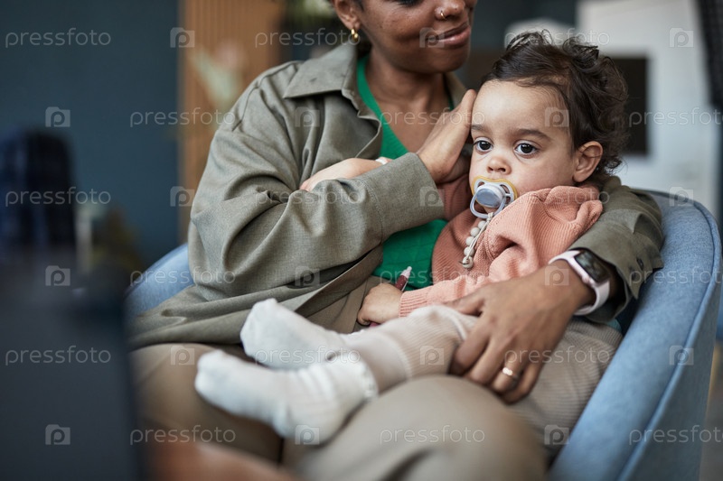 Афроамериканская мать обнимает ребенка внутри дома