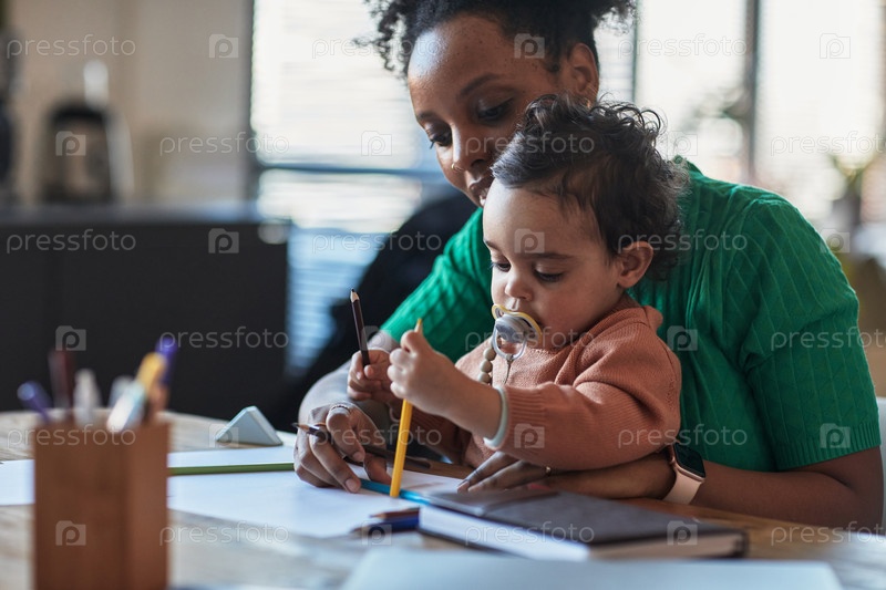 Портрет матери, помогающей ребенку с деятельностью рисования