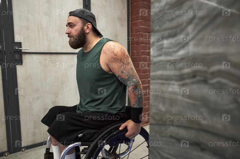 Человек в инвалидном кресле, носящий танковый топ на открытом воздухе