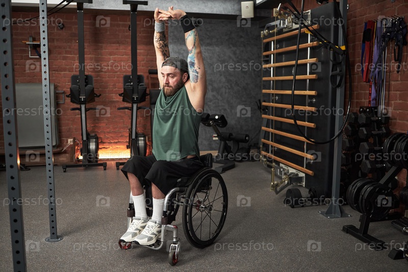 Человек в инвалидной коляске, занимающийся гангстером на тренажерном зале
