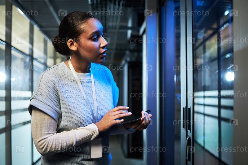 Инспектирование серверной комнаты центра обработки данных с помощью планшетного устройства