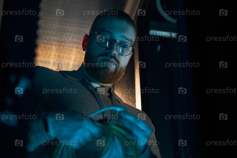 Работаю в серверной комнате, обрабатываю сетевые кабели