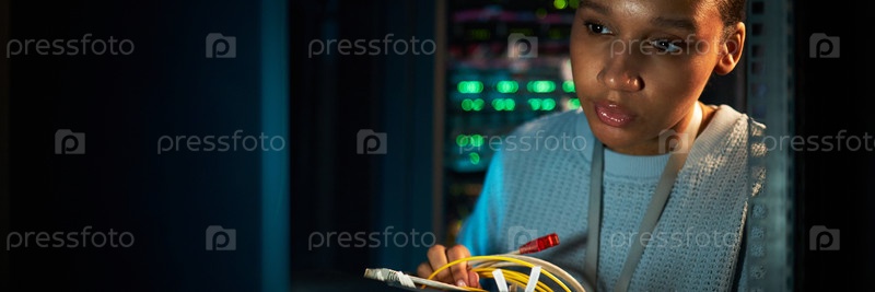 Афроамериканская женщина, работающая в центре обработки данных