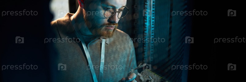 Концентрируясь на компьютерном обслуживании в серверной комнате