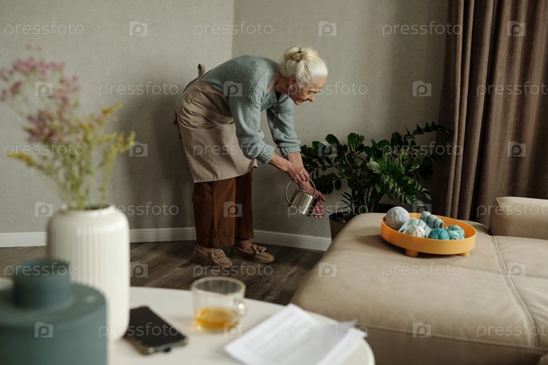 Поливные растения в уютной гостиной с теплым декором