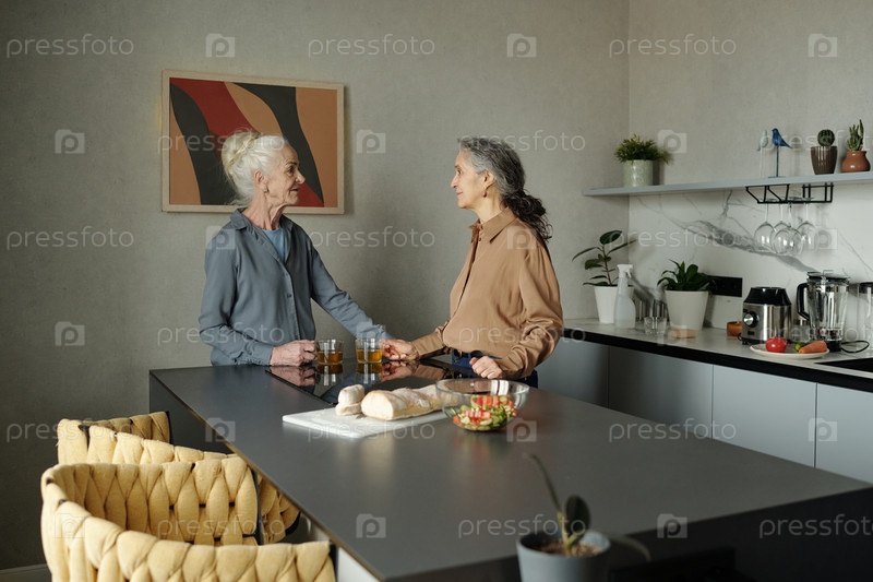 Пожилые женщины вместе наслаждаются временем на современной кухне