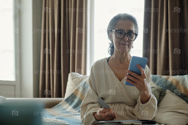 Пожилая женщина занимается технологией, держа устройство