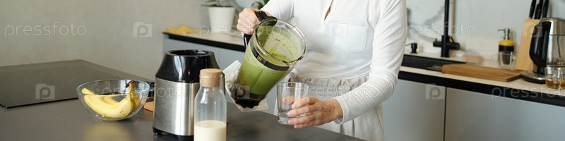 Подготовка зеленого смузи в современной кухонной среде