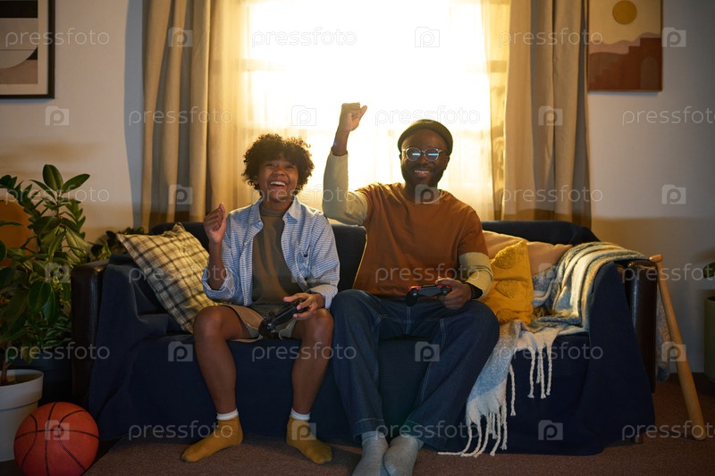 Отец и сын наслаждаются видеоиграми на диване