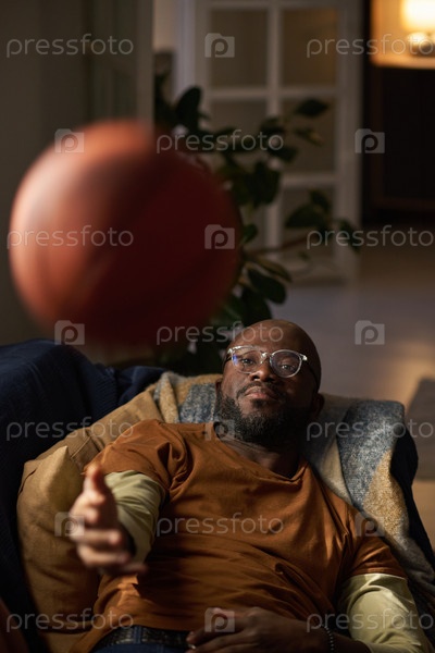 Африканский американец бросает футбол, отдыхая дома