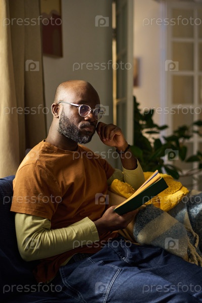 Рефлексивный момент чтения книги в уютной сидячей зоне