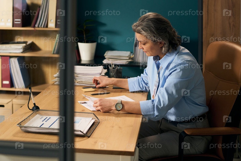 Просмотр документов клиента Социальный работник Женщина среднего возраста Офис