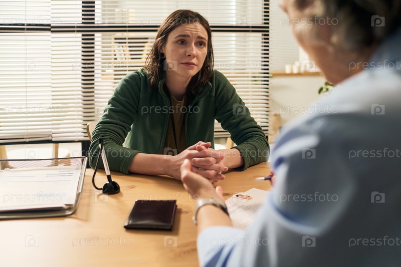 Консультирование молодой взрослой женщины с социальным работником в офисной обстановке
