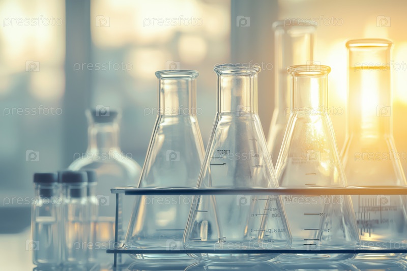 Стаканы и бутылки в лаборатории для установки стекла
