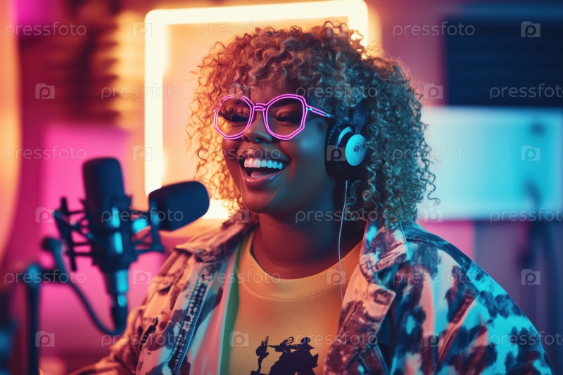 Смеющаяся женщина записывает музыку в Vibrant Studio