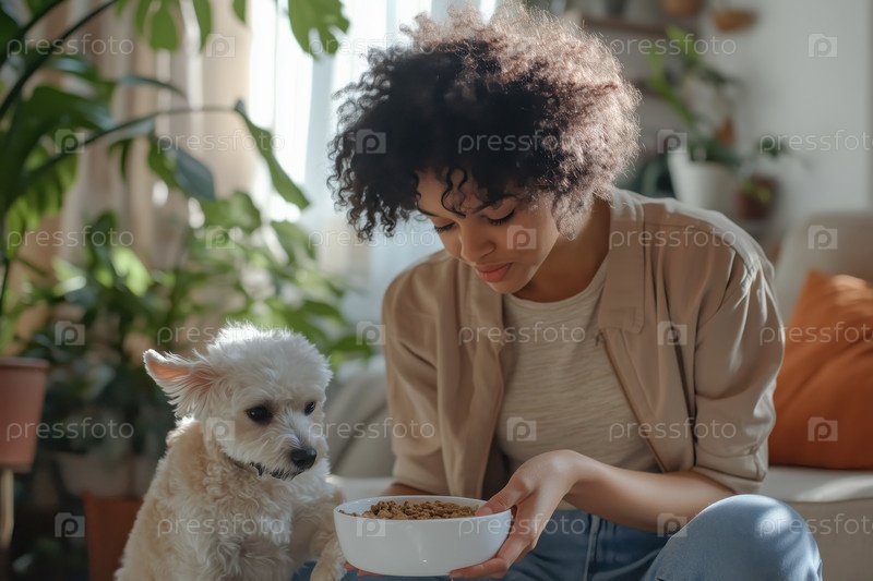 Кормление домашних собак в помещении с естественным окружением