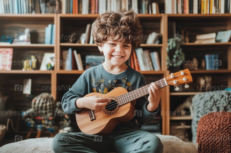Улыбающийся мальчик виноватый в уютной обстановке гостиной