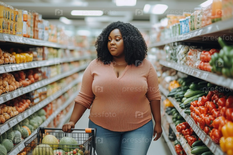 Покупки свежих продуктов в проходе супермаркета