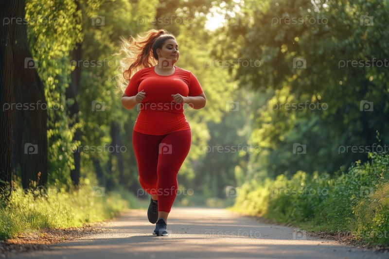 Женщина, бегущая вдоль листового пути под ярким солнечным светом