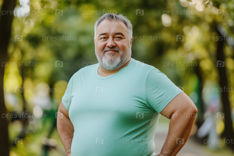 Улыбающийся пожилой мужчина стоит на открытом воздухе в парке