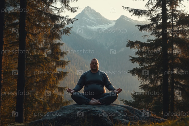 Медитация на скале в безмятежных лесных условиях