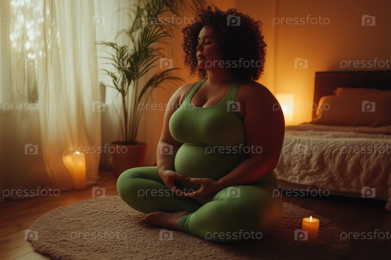 Медитирующая женщина на йога-матке в уютной спальне