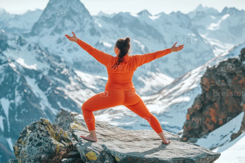 Практиковать позы йоги на снежных горных скалах