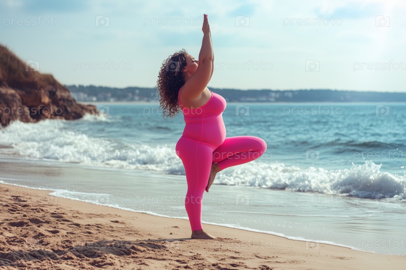 Практика йоги на пляже в розовой активной одежде от Ocean