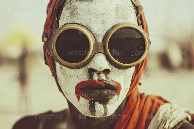 Портрет человека, носящего уникальную краску для лица и очки