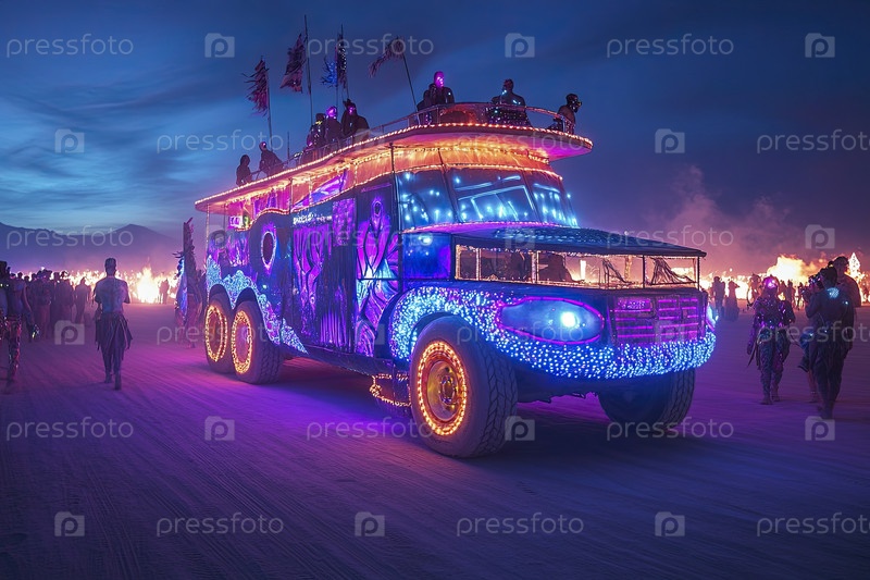 Иллюминированный художественный грузовик на фестивале Night Desert Festival