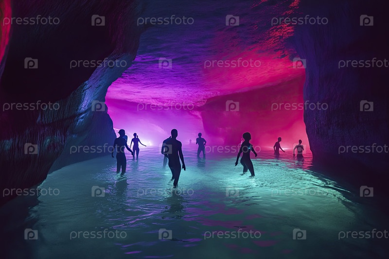 Исследование светящейся пещеры с ярким освещением