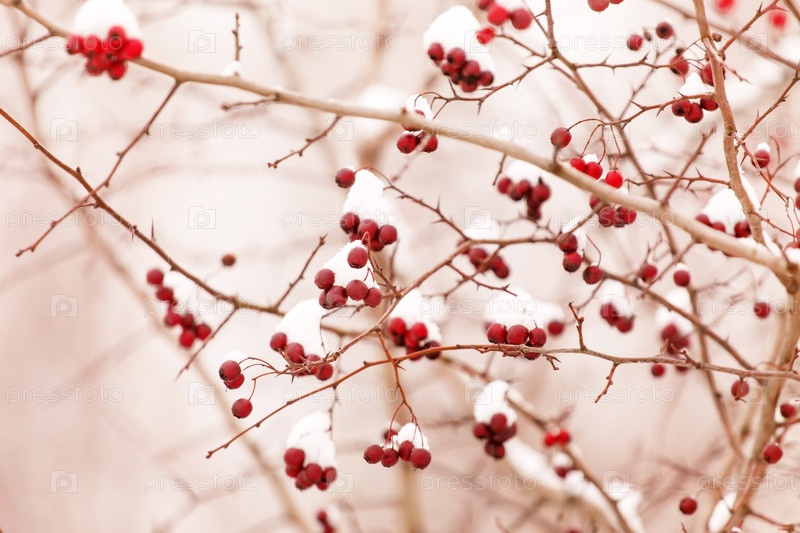 Плоды боярышника под снегом