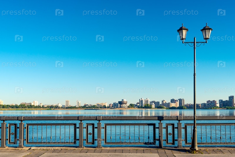 Набережная вдоль реки Казанка рано утром в городе Казань.Россия