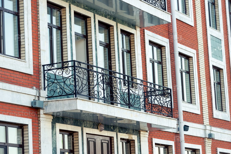 Балкон с черными чугунными перилами в старом европейском стиле