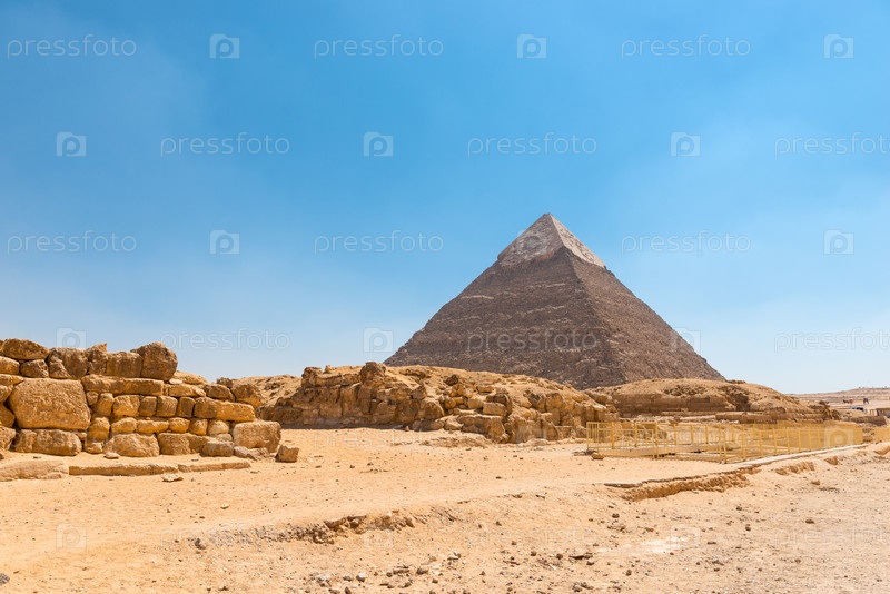 Красивая величественная египетская пирамида Хафры под палящим солнцем пустыни Сахара