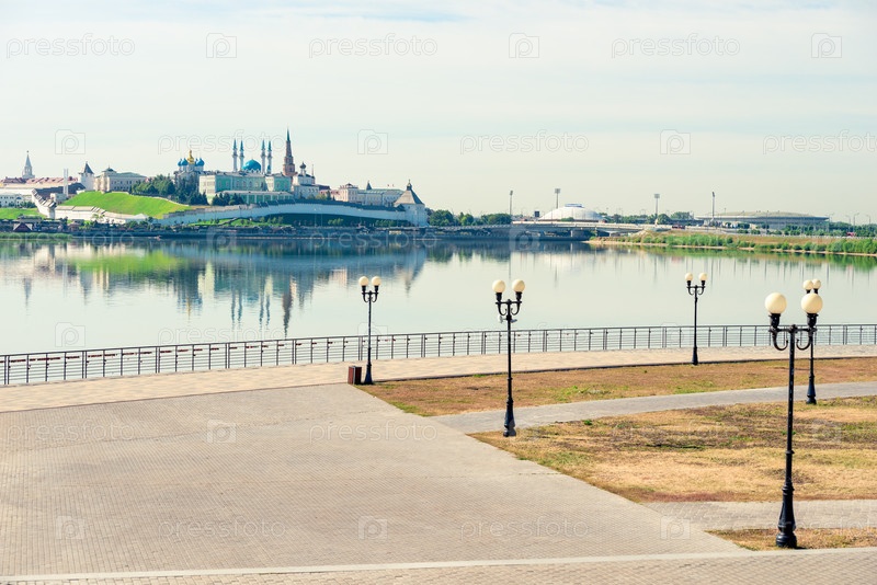 Живописный вид на набережной реки Казанка и Кремль Казани