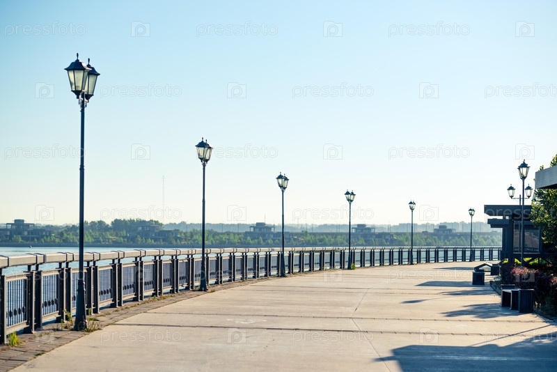 Набережная вдоль реки Казанка рано утром в городе Казань.Россия