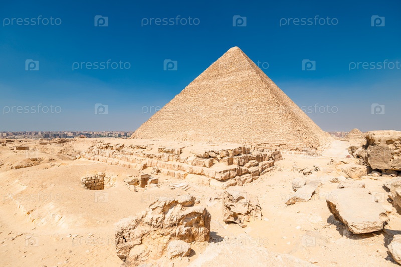 Красивая величественная египетская пирамида Хеопса под палящим солнцем пустыни Сахара