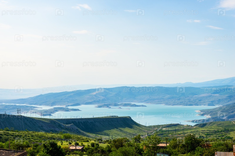 Великолепный вид на водоем Чиркей в горах Северного Кавказа Дагестана
