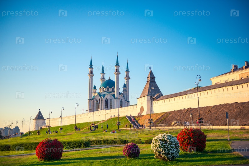 Живописный пейзаж Казанского Кремля в лучах заходящего солнца.Россия