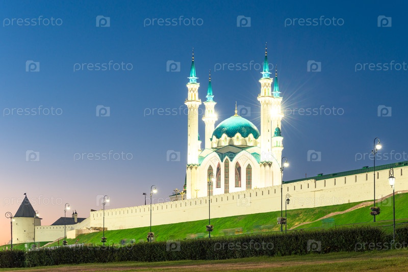 Живописный вечерний вид на мечеть Куль Шариф Казанского Кремля