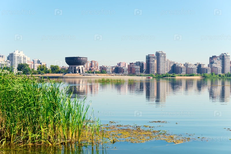 Красивый вид на свадебный дворец Казани на реке Казанка.Россия