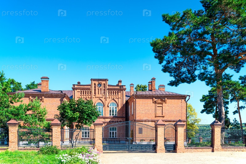 Старое кирпичное здание школы на острове Свияжск.Россия
