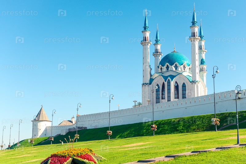 Живописный вид на Казанский Кремль и мечеть Куля Шарифа.Россия