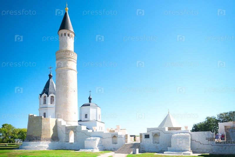 Красивая белая соборная мечеть с болгарским минаретом
