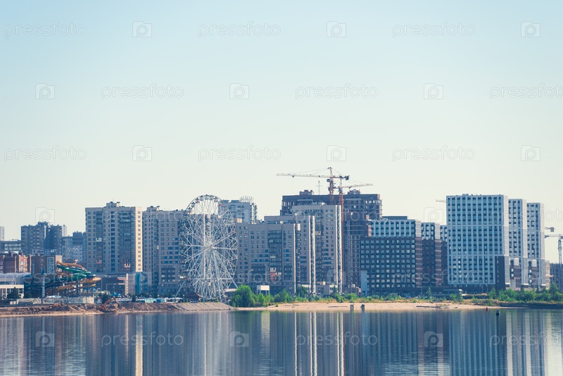 Городской ландшафт современных многоэтажных жилых зданий города Казани и реки Казанка. Россия