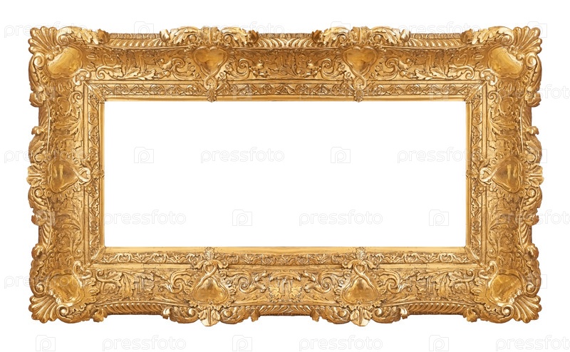 Панорамная золотая рама для картин, зеркал или фотографий, изолированных на белом фоне