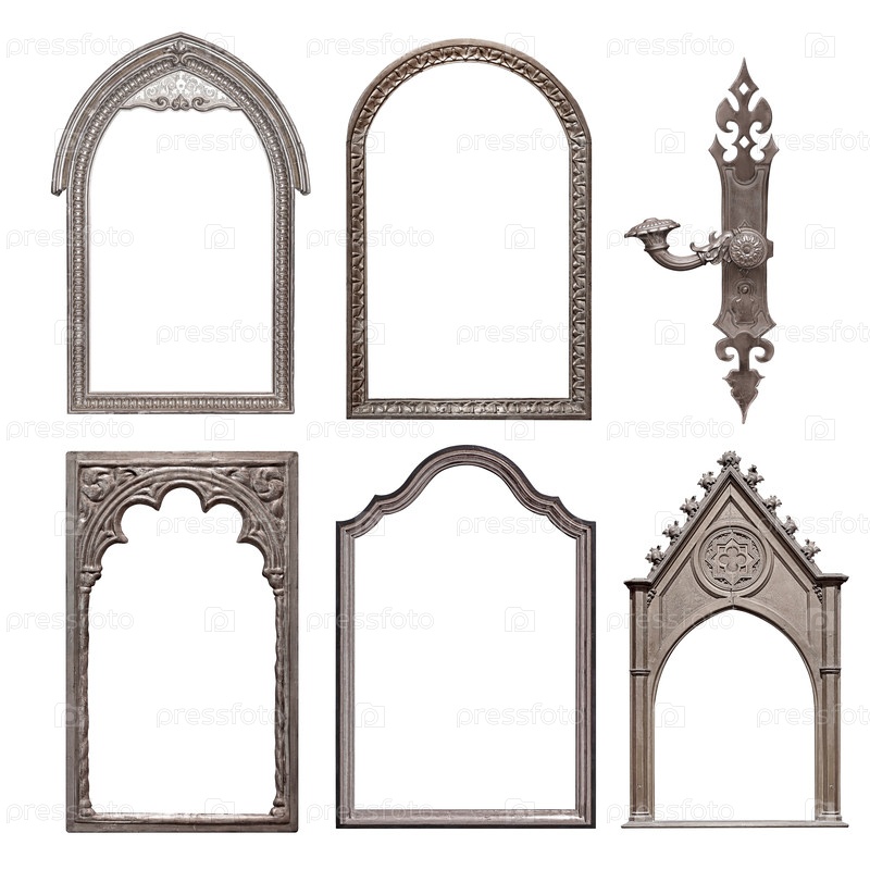 Набор серебряных рамок для картин, зеркал или фотографий, изолированных на белом фоне